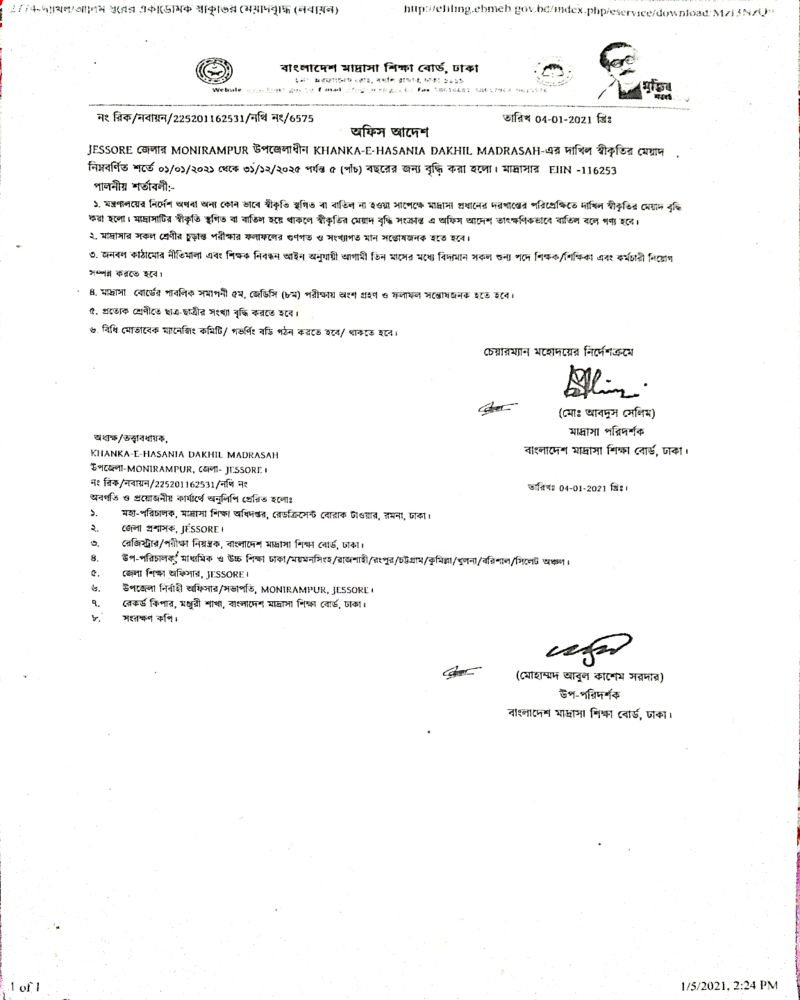 প্রতিষ্ঠানের পাঠদানের অনুমতি ও স্বীকৃতি